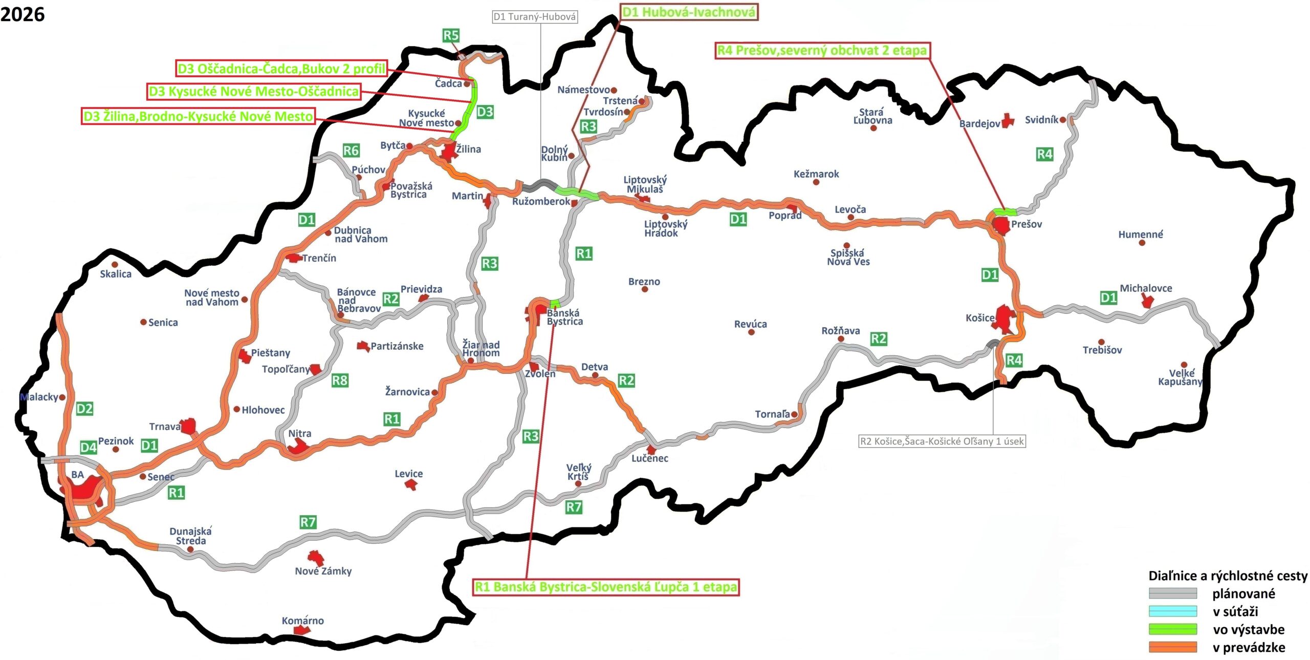 Rýchlostné cesty:341,11 km z toho 61,262 km iba polovičný profil