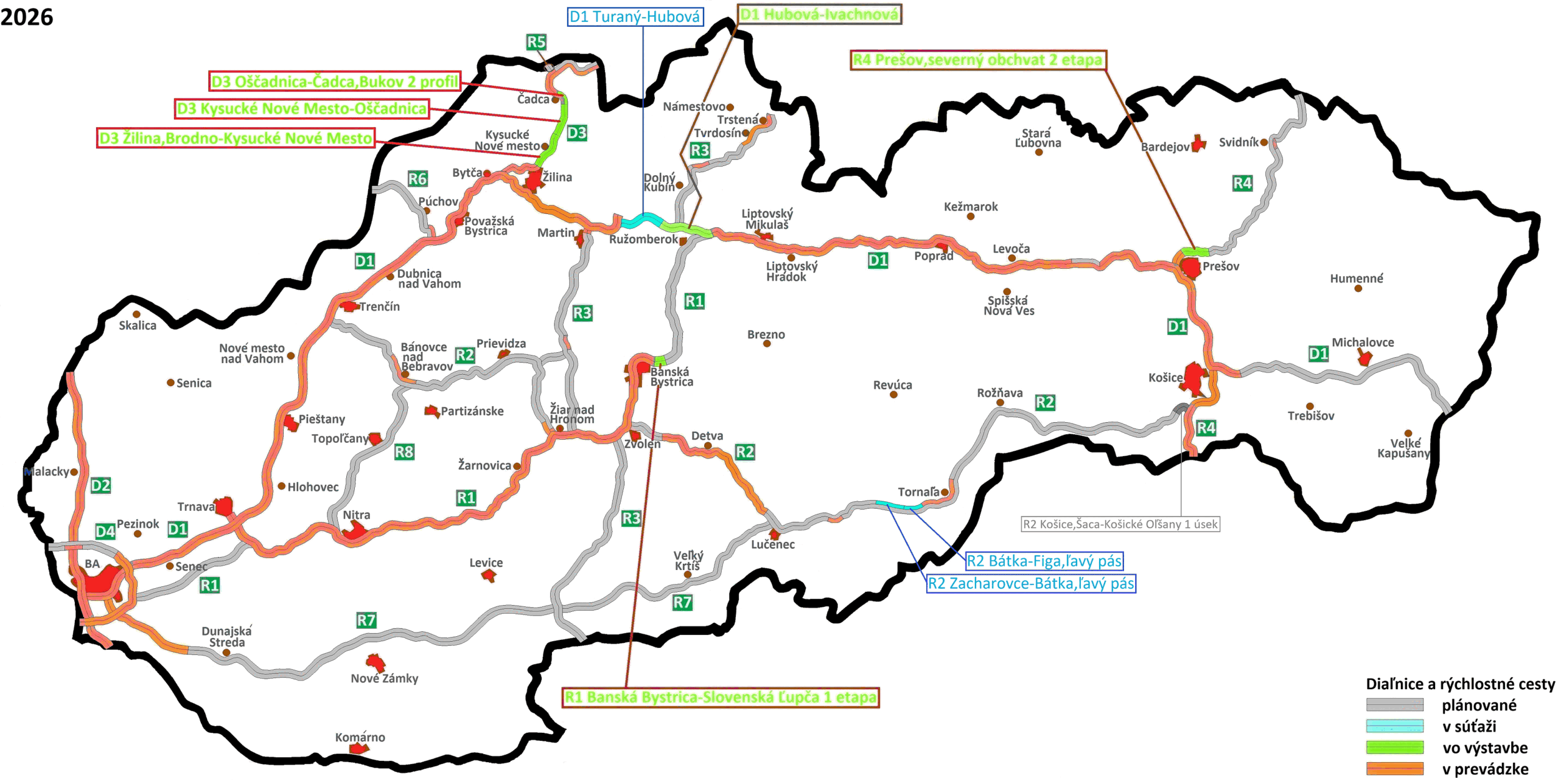 Stav diaľničnej siete k 30.3.2026